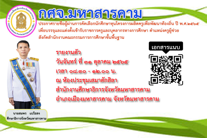 ประกาศรายชื่อผู้ผ่านการคัดเลือกนักศึกษา Published 26 October 2022 at 720 × 480 in ประกาศรายชื่อผู้ผ่านการคัดเลือกนักศึกษา ← Previous Next →