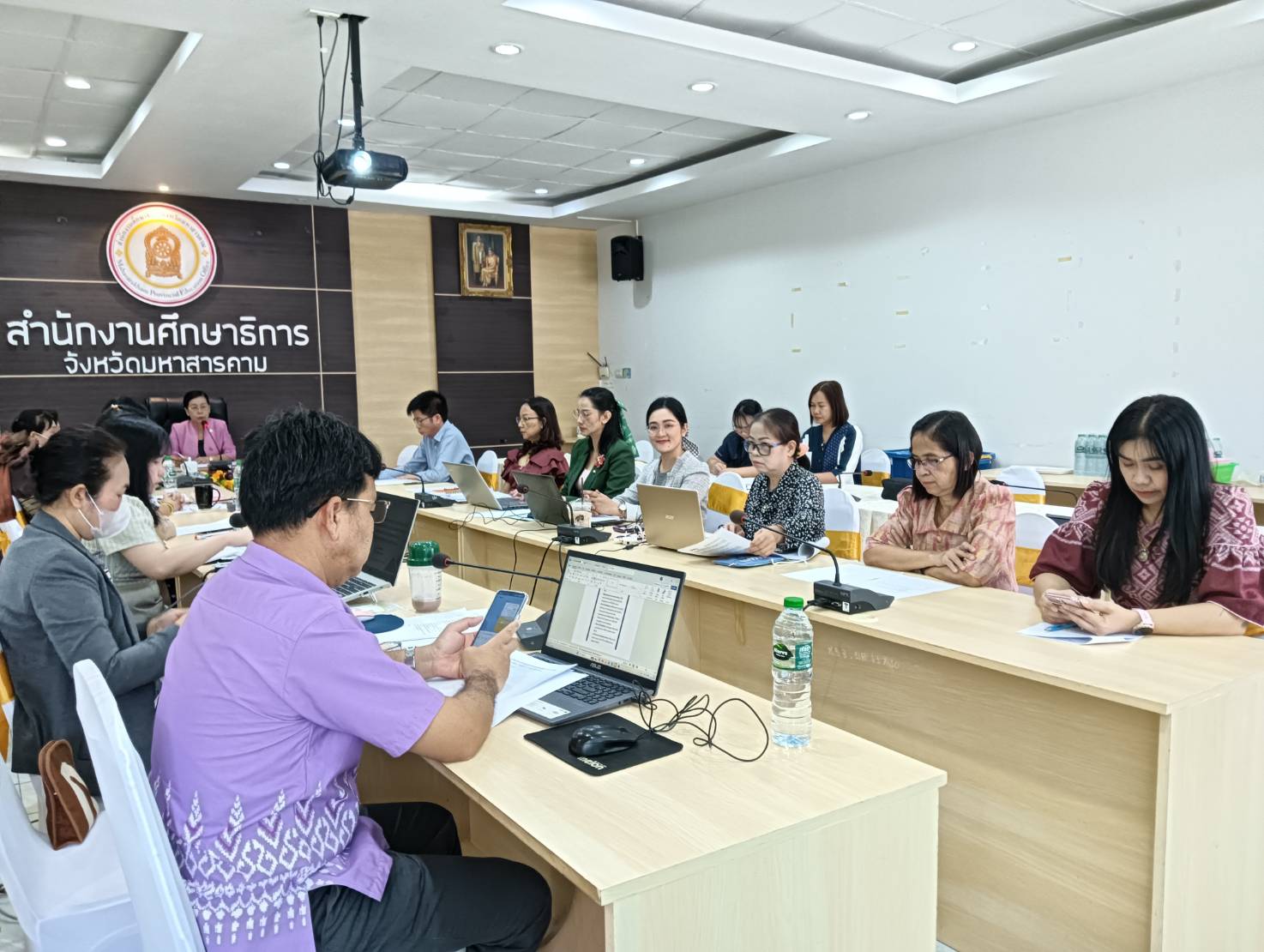 กิจกรรม วันที่ ๒ ตุลาคม ๒๕๖๘ ดร.พุทธารัตน์ ทะสา ศึกษาธิการจังหวัดมหาสารคาม เป็นประธานการประชุมผลการกำกับดูแล เร่งรัด ติดตามและประเมินผล การปฏิบัติงานของส่วนราชการหรือหน่วยงาน และสถานศึกษาในสังกัด กระทรวงศึกษาธิการ ให้เป็นไปตามนโยบายของกระทรวงศึกษาธิการ ของสำนักงานศึกษาธิการจังหวัดมหาสารคาม โดยมี นางสาวผกาณิต พูลทวี รองศึกษาธิการจังหวัดมหาสารคาม พร้อมด้วย ผู้อำนวยการกลุ่ม/หน่วย และบุคลากรสำนักงานศึกษาธิการจังหวัดมหาสารคาม ร่วมประชุมในครั้งนี้ ณ ห้องประชุมเสมาตักสิลา อำเภอเมืองมหาสารคาม จังหวัดมหาสารคาม Posted on 6 October 2025 by admin admin วันจันทร์ที่ 29 กันยายน 2568 เวลา 08.30 น. ดร.พุทธารัตน์ ทะสา ศึกษาธิการจังหวัดมหาสารคาม พร้อมด้วยคณะผู้บริหารและบุคลากรสำนักงานศึกษาธิการจังหวัดมหาสารคาม ร่วมกิจกรรมเทิดทูนชาติ ศาสนา และพระมหากษัตริย์ โดยการเข้าแถวเคารพธงชาติ สวดมนต์ไหว้พระ กล่าวอุดมการณ์รักชาติ และคำปฏิญาณตน เพื่อแสดงออกถึงความจงรักภักดีต่อชาติ ศาสนา และพระมหากษัตริย์ และทำสมาธิโดยการเดินจงกรม การนั่งสมาธิ ตามหลักสูตรชินนสาสมาธิ ในการนี้ ดร.พุทธารัตน์ ทะสา ศึกษาธิการจังหวัดมหาสารคาม ได้แจ้งข้อราชการและนโยบายการปฏิบัติงานแก่บุคลากร ณ ห้องประชุมเสมาตักสิลา สำนักงานศึกษาธิการจังหวัดมหาสารคาม วันจันทร์ที่ ๖ ตุลาคม ๒๕๖๘ เวลา ๐๘.๓๐ น. นางพุทธารัตน์ ทะสา ศึกษาธิการจังหวัดมหาสารคาม มอบหมายให้ นางสาวผกาณิต พูลทวี รองศึกษาธิการจังหวัดมหาสารคาม และบุคลากรสำนักงานศึกษาธิการจังหวัดมหาสารคาม ร่วมกิจกรรมเทิดทูนชาติ ศาสนา และพระมหากษัตริย์ โดยการเข้าแถวเคารพธงชาติ สวดมนต์ไหว้พระ กล่าวอุดมการณ์รักชาติ และคำปฏิญาณตน เพื่อแสดงออกถึงความจงรักภักดีต่อชาติ ศาสนา และพระมหากษัตริย์ และทำสมาธิโดยการเดินจงกรม การนั่งสมาธิ ตามหลักสูตรชินนสาสมาธิ ในการนี้ รองศึกษาธิการจังหวัดมหาสารคาม ได้แจ้งข้อราชการและนโยบายการปฏิบัติงาน แก่บุคลากรสำนักงานศึกษาธิการจังหวัดมหาสารคาม ณ ห้องประชุมเสมาตักสิลา สำนักงานศึกษาธิการจังหวัดมหาสารคาม