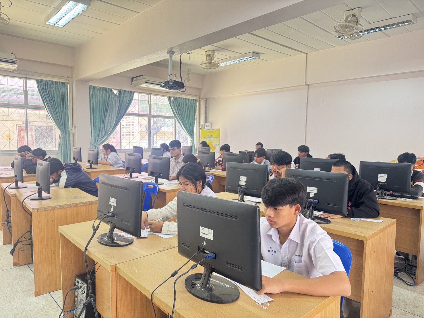 วันที่ ๖ กุมภาพันธ์ ๒๕๖๙ ดร.พุทธารัตน์ ทะสา ศึกษาธิการจังหวัดมหาสารคาม เป็นประธานศูนย์สอบสำนักงานศึกษาธิการจังหวัดมหาสารคาม พร้อมคณะผู้ประสานงานศูนย์สอบ และคณะทำงานตัวแทนศูนย์สอบสำนักงานศึกษาธิการจังหวัดมหาสารคาม ประจำสนามสอบดำเนินการทดสอบทางการศึกษาระดับชาติขั้นพื้นฐาน (O-NET) ระดับชั้นมัธยมศึกษาปีที่ ๓ ด้วยระบบดิจิทัล (Digital Testing) ปีการศึกษา ๒๕๖๘ ณ สนามสอบสาธิตเทศบาลศรีสวัสดิ์วิทยา สนามสอบเทศบาลบูรพาพิทยาคาร