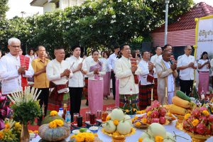วันที่ 19 สิงหาคม 2568 เวลา 07.00 น. ดร.พุทธารัตน์ ทะสา ศึกษาธิการจังหวัดมหาสารคาม ร่วมเป็นเกียรติในพิธีบูชามเหศักดิ์หลักเมือง เนื่องในวาระครบรอบ 160 ปี เมืองมหาสารคาม ซึ่งจัดโดย สำนักงานวัฒนธรรมจังหวัดมหาสารคาม โดยมี นายวิบูรณ์ แววบัณฑิต ผู้ว่าราชการจังหวัดมหาสารคาม เป็นประธานในพิธี ณ บริเวณศาลหลักเมืองมหาสารคาม ตำบลตลาด อำเภอเมืองมหาสารคาม จังหวัดมหาสารคาม