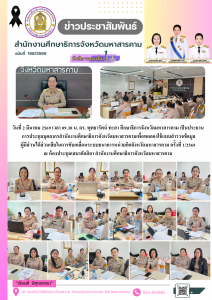 วันที่ 2 มีนาคม 2569 เวลา 09.30 น. ดร. พุทธารัตน์ ทะสา ศึกษาธิการจังหวัดมหาสารคาม เป็นประธาน การประชุมบุคลากรสำนักงานศึกษาธิการจังหวัดมหาสารคามเพื่อทดลองใช้แบบสำรวจข้อมูล ผู้มีส่วนได้ส่วนเสียในการขับเคลื่อนระบบธนาคารหน่วยกิตจังหวัดมหาสารคาม ครั้งที่ 1/2569 ณ ห้องประชุมเสมาตักสิลา สำนักงานศึกษาธิการจังหวัดมหาสารคาม