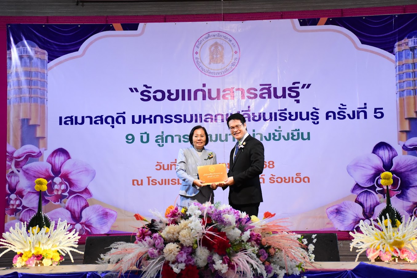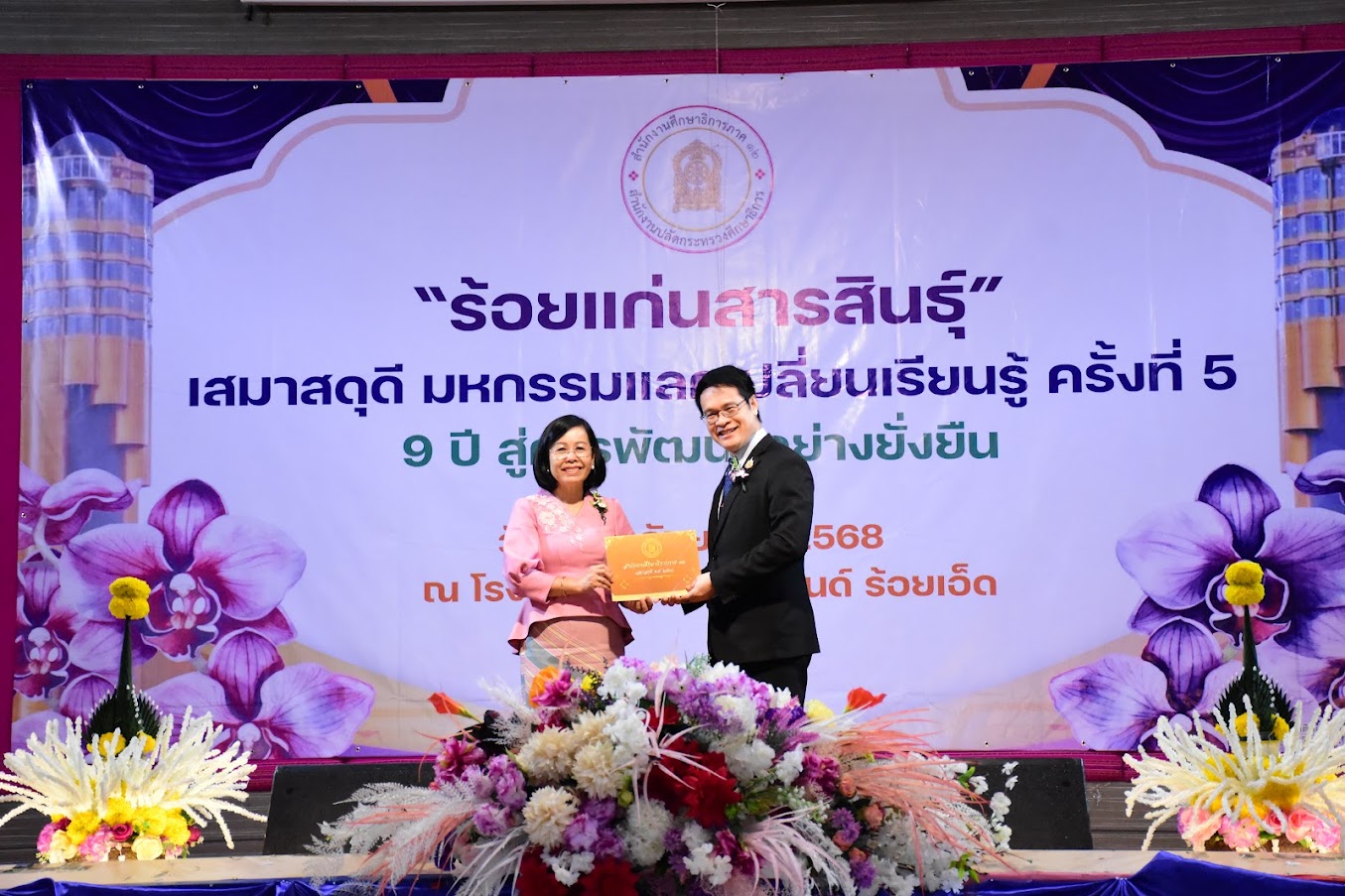 วันที่ 26 กันยายน 2568 เวลา 09.00 น. ดร.พุทธารัตน์ ทะสา ศึกษาธิการจังหวัดมหาสารคาม พร้อมด้วย นางสาวผกาณิต พูลทวี รองศึกษาธิการจังหวัดมหาสารคาม และบุคลากรสำนักงานศึกษาธิการจังหวัดมหาสารคาม ร่วมงาน “ร้อยแก่นสารสินธุ์” : เสมาสดุดี มหกรรมแลกเปลี่ยนเรียนรู้ ครั้งที่ 5 : 9 ปี สู่การพัฒนาอย่างยั่งยืน โดยมี ดร.สุภชัย จันปุ่ม ผู้ตรวจราชการกระทรวงศึกษาธิการ เป็นประธานกล่าวเปิดและบรรยายพิเศษ พร้อมด้วย ดร.สัมนาการณ์ บุญเรือง รองศึกษาธิการภาค 13 ปฏิบัติหน้าที่รองศึกษาธิการภาค 12 กล่าวรายงานวัตถุประสงค์ ณ ศูนย์ประชุมสุวรรณภูมิ โรงแรมวันโอวันร้อยเอ็ด อำเภอเมืองร้อยเอ็ด จังหวัดร้อยเอ็ด