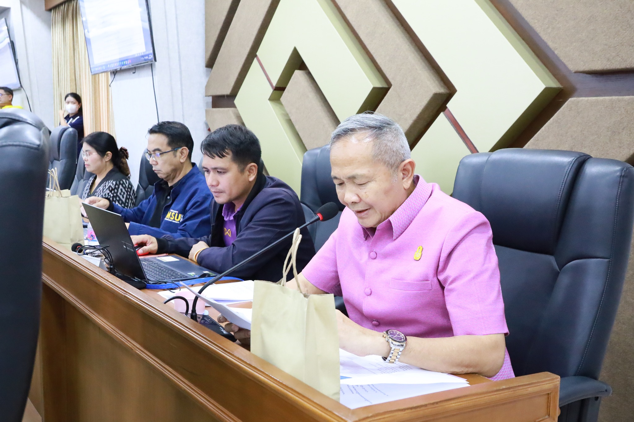 วันที่ 5 สิงหาคม 2568 เวลา 13.30 น. ดร.พุทธารัตน์ ทะสา ศึกษาธิการจังหวัดมหาสารคาม เข้าร่วมประชุมคณะกรรมการฝ่ายอำนวยการขับเคลื่อนฉลองเมืองมหาสารคาม เนื่องในวาระครบรอบ 160 ปี ประจำปีงบประมาณ พ.ศ. 2568 ครั้งที่ 4 ซึ่งจัดโดยสำนักงานวัฒนธรรมจังหวัดมหาสารคาม โดยมี นายวิบูรณ์ แววบัณฑิต ผู้ว่าราชการจังหวัดมหาสารคาม เป็นประธาน ณ ห้องประชุมพระบรมธาตุนาดูน ชั้น 4 ศาลากลางจังหวัดมหาสารคาม ตำบลแวงน่าง อำเภอเมืองมหาสารคาม จังหวัดมหาสารคาม ทั้งนี้ ที่ประชุมได้รายงานความก้าวหน้า จากผลการดำเนินงานของคณะกรรมการฝ่ายอำนวยการ หน่วยงานด้านต่างๆ ติดตามการทำงานให้เป็นไปตามเป้าหมายและเป็นรูปธรรมชัดเจน รวมทั้งการเตรียมความพร้อมเพื่อบูรณาการขับเคลื่อน ส่งเสริมให้เกิดกิจกรรมนำไปสู่การส่งเสริมอัตลักษณ์ของจังหวัดมหาสารคาม