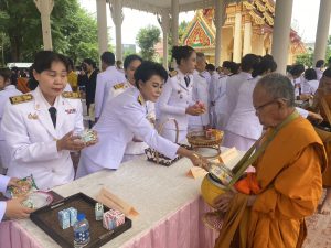 วันที่ 9 กรกฎาคม 2568 เวลา 07.00 น. ดร. พุทธารัตน์ ทะสา ศึกษาธิการจังหวัดมหาสารคาม มอบหมายให้ ดร.ศศิธร สุวรรณพูล รองศึกษาธิการจังหวัดมหาสารคาม พร้อมด้วยบุคลากร กลุ่มลูกเสือ ยุวกาชาดและกิจการนักเรียน ร่วมพิธีทำบุญตักบาตรถวายพระราชกุศลเนื่องในโอกาสวันคล้ายวันประสูติพระเจ้าวรวงศ์เธอ พระองค์เจ้าโสมสวลี กรมหมื่นสุทธนารีนาถ 13 กรกฎาคม โดยมี นายวิบูรณ์ แววบัณฑิต ผู้ว่าราชการจังหวัดมหาสารคาม เป็นประธานในพิธี ณ วัดธัญญาวาส ตำบลตลาด อำเภอเมืองมหาสารคาม จังหวัดมหาสารคาม