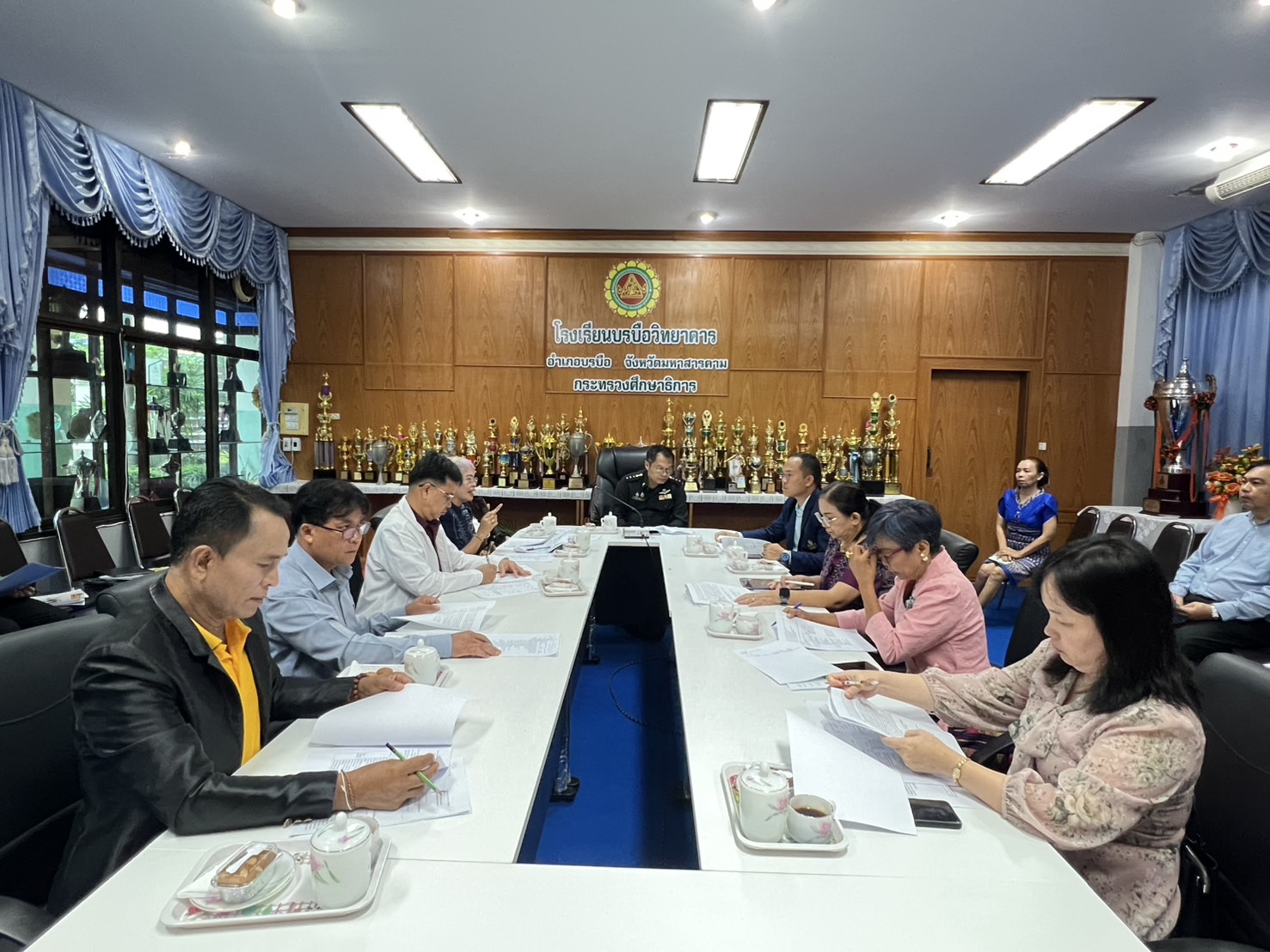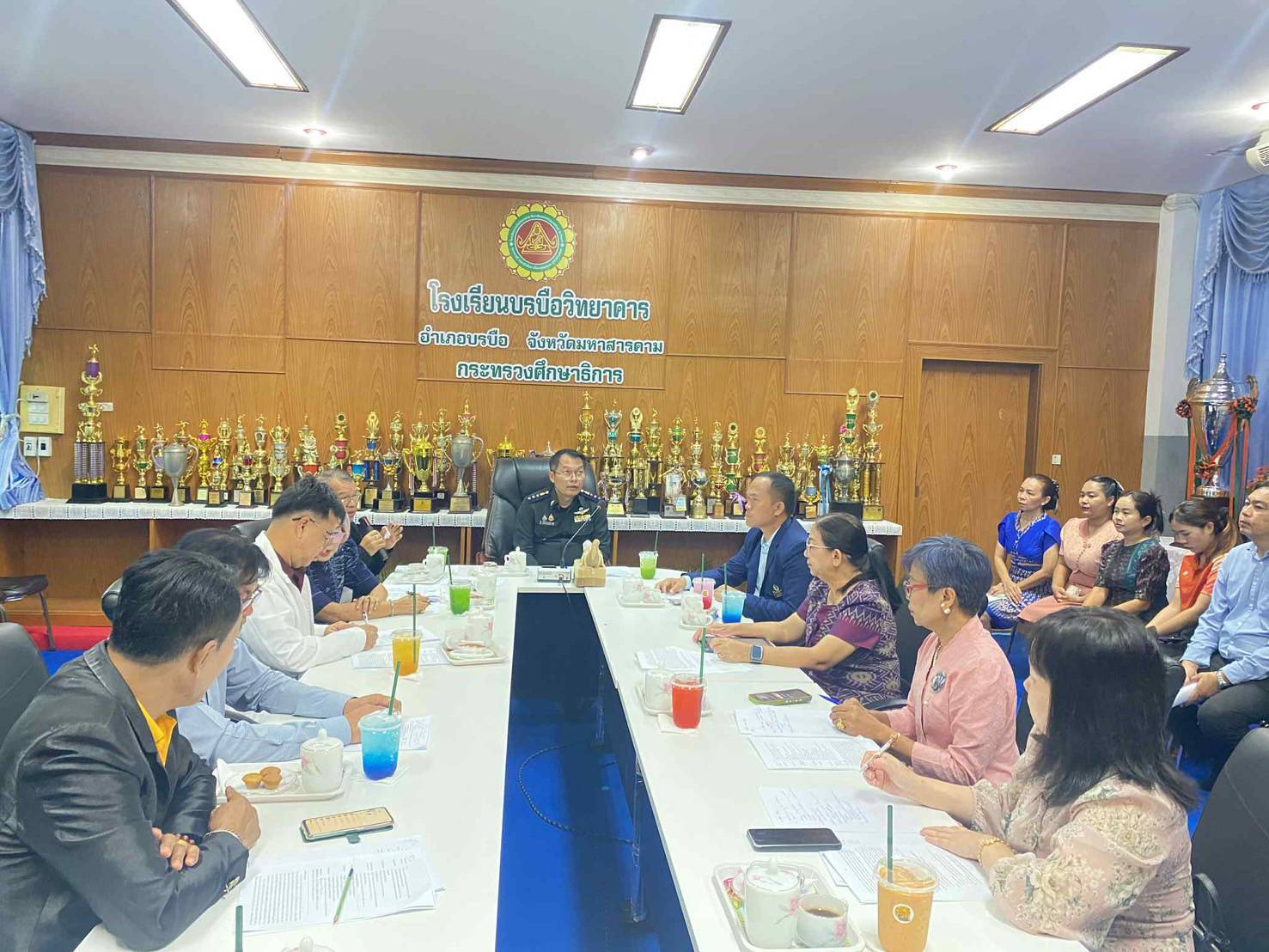 วันพฤหัสบดีที่ ๓ กรกฎาคม ๒๕๖๘ เวลา ๐๙.๐๐ น. ดร.พุทธารัตน์ ทะสา มอบหมายให้ ดร.สุเขตร์ ศรีบุญเรือง และนางสาวนิตยา ฮะยงยุทธ ศึกษานิเทศก์ชำนาญการพิเศษ พร้อมด้วย คณะปราชญ์ ศาสตร์ ศิลป์ ถิ่นตักสิลา ออกนิเทศติดตามและประเมินผลการดำเนินงานสถานศึกษาต้นแบบ ในการฝึก “ทักษะอาชีพ วิถีคนตักศิลานคร” ภายใต้โครงการสร้างและส่งเสริมความเป็นพลเมืองดีตามรอยพระยุคลบาท ด้านการศึกษาสู่การปฏิบัติ จังหวัดมหาสารคาม ปีงบประมาณ พ.ศ.๒๕๖๘ เพื่อให้การจัดกิจกรรมการเรียนการสอน เป็นไปอย่างมีประสิทธิภาพและประเมินผล ณ โรงเรียนบรบือวิทยาคาร อำเภอบรบือ จังหวัดมหาสารคาม