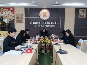 กิจกรรม วันพุธที่ ๑๔ มกราคม ๒๕๖๙ เวลา 09.00น. ดร. พุทธารัตน์ ทะสา ศึกษาธิการจังหวัดมหาสารคาม เป็นประธานในการประชุมคณะกรรมการตัดสินการประกวดวิดีโอพอดแคสต์สร้างสรรค์ หัวข้อ “เสียงไทย สายใจแห่งชาติ” ระดับจังหวัด ซึ่งผลการตัดสิน รางวัลชนะเลิศ ได้รับเงินรางวัลจำนวน 2,500 บาท ได้แก่ โรงเรียนเซนต์แมรี่พยัคฆภูมิพิสัย ในชื่อเรื่อง รายการพิเศษ “เสียงเดียวกัน..ผูกพันเป็นหนึ่งเดียว” และเป็นตัวแทนไปคัดเลือกในระดับประเทศ ต่อไป ณ ห้องประชุมเสมาตักสิลา สำนักงานศึกษาธิการจังหวัดมหาสารคาม Posted on 15 January 2026 by admin admin วันพุธที่ ๑๔ มกราคม ๒๕๖๙ ดร. พุทธารัตน์ ทะสา ศึกษาธิการจังหวัดมหาสารคาม พบปะผู้บริหาร ครูโรงเรียนเอกชน เพื่อขับเคลื่อนนโยบาย เรียนดี มีคุณธรรม และติดตามการ ขับเคลื่อนนโยบายด้านการจัดการศึกษา “ตักสิลานครเป็นหนึ่ง” สู่การปฏิบัติอย่างมีประสิทธิภาพ ของโรงเรียนเอกชนในกำกับสำนักงานศึกษาธิการจังหวัดมหาสารคาม ณ โรงเรียนอนุบาลธันยพร อำเภอแกดำและโรงเรียนประถมอนันตญา อำเภอเมืองจังหวัดมหาสารคาม ทั้งนี้ ได้มอบทุนการศึกษาให้กับโรงเรียนเพื่อนำไปพัฒนาผู้เรียนให้มีความสำนึกในพระมหากรุณาธิคุณของสมเด็จพระนางเจ้าสิริกิติ์ พระบรมราชินีนาถ พระบรมราชชนนีพันปีหลวง วันพุธที่ ๑๔ มกราคม ๒๕๖๙ เวลา ๑๓.๓๐ น. ดร.พุทธารัตน์ ทะสา ศึกษาธิการจังหวัดมหาสารคาม พร้อมด้วย นางสาวดาวศิริ ไชยวาน รองศึกษาธิการจังหวัดมหาสารคาม,บุคลากรกลุ่มพัฒนาการศึกษา บุคลากรกลุ่มนิเทศ ติดตามและประเมินผล และบุคลากรกลุ่มบริหารงานบุคคล ร่วมประชุมคณะกรรมการศึกษาธิการจังหวัดมหาสารคาม ครั้งที่ ๑/๒๕๖๙ ณ ห้องประชุมเสมาตักสิลา สำนักงานศึกษาธิการจังหวัดมหาสารคาม ทั้งนี้ได้รับเกียรติจาก นายกองเอก เสนีย์ มะโน รองผู้ว่าราชการจังหวัดมหาสารคาม ประธานคณะกรรมการศึกษาธิการจังหวัดมหาสารคาม เป็นประธานในการประชุมครั้งนี้