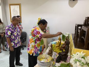 กิจกรรม วันศุกร์ที่ ๑๑ เมษายน ๒๕๖๘ เวลา ๑๑.๐๐ น. ดร.พุทธารัตน์ ทะสา ศึกษาธิการจังหวัดมหาสารคาม พร้อมด้วย ดร.ศศิธร สุวรรณพูล รองศึกษาธิการจังหวัดมหาสารคาม ผู้อำนวยการกลุ่ม/หน่วย และบุคลากรในสังกัด ร่วมพิธีสรงน้ำพระและสิ่งศักดิ์สิทธิ์ประจำสำนักงานศึกษาธิการจังหวัดมหาสารคามและรดน้ำดำหัวขอพรผู้บริหารเพื่อความเป็นสิริมงคล และขอพรเนื่องในโอกาสเทศกาลสงกรานต์ และวันขึ้นปีใหม่ไทย ซึ่งถือเป็นการสืบทอด ขนบธรรมเนียมประเพณี ณ ห้องประชุมเสมาตักสิลา สำนักงานศึกษาธิการจังหวัดมหาสารคาม Posted on 11 April 2025 by admin admin คำสั่งสำนักงานศึกษาธิการจังหวัด เรื่อง การมอบหมายงานให้ข้าราชการปฏิบัติงานและกำหนดหน้าที่ความรับผิดชอบ ประกาศรายชื่อผู้สมัครเข้ารับการคัดเลือกเป็นกรรมการส่งเสริมการศึกษาเอกชนที่มีคุณสมบัติครบถ้วน