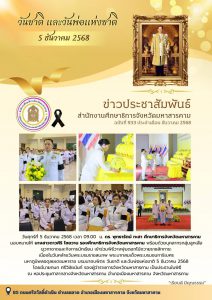 กิจกรรม วันศุกร์ที่ 5 ธันวาคม 2568 เวลา 09.00 น. ดร. พุทธารัตน์ ทะสา ศึกษาธิการจังหวัดมหาสารคาม มอบหมายให้ นางสาวดาวศิริ ไชยวาน รองศึกษาธิการจังหวัดมหาสารคาม พร้อมด้วยบุคลากรกลุ่มลูกเสือ ยุวกาชาดและกิจการนักเรียน เข้าร่วมพิธีวางพุ่มดอกไม้ถวายราชสักการะ เนื่องในวันคล้ายวันพระบรมราชสมภพ พระบาทสมเด็จพระบรมชนกาธิเบศร มหาภูมิพลอดุลยเดชมหาราช บรมนาถบพิตร วันชาติ และวันพ่อแห่งชาติ 5 ธันวาคม 2568 โดยมีนายกนก ศรีวิชัยนันท์ รองผู้ว่าราชการจังหวัดมหาสารคาม เป็นประธานในพิธี ณ หอประชุมศาลากลางจังหวัดมหาสารคาม อำเภอเมืองมหาสารคาม จังหวัดมหาสารคาม Posted on 8 December 20258 December 2025 by admin admin วันศุกร์ที่ 5 ธันวาคม 2568 เวลา 07.30 น. ดร. พุทธารัตน์ ทะสา ศึกษาธิการจังหวัดมหาสารคาม มอบหมายให้ นางสาวดาวศิริ ไชยวาน รองศึกษาธิการจังหวัดมหาสารคาม พร้อมด้วยบุคลากร กลุ่มลูกเสือ ยุวกาชาดและกิจการนักเรียน เข้าร่วมพิธีเจริญพระพุทธมนต์และทำบุญตักบาตรถวาย พระราชกุศลพระบาทสมเด็จพระชนกาธิเบศร มหาภูมิพลอดุลยเดชมหาราชบรมนาถบพิตรเนื่องในวันคล้ายวันพระราชสมภพ วันชาติ และวันพ่อแห่งชาติ 5 ธันวาคม 2568 ณ วัดปัจฉิมทัศน์ตำบลตลาด อำเภอเมืองมหาสาราคาม จังหวัดมหาสารคาม โดยมี นายกนก ศรีวิชัยนันท์ รองผู้ว่าราชการจังหวัดมหาสารคาม เป็นประธาน วันอาทิตย์ที่ ๗ ธันวาคม ๒๕๖๘ เวลา ๐๗.๐๐ น. ดร.พุทธารัตน์ ทะสา ศึกษาธิการจังหวัดมหาสารคาม มอบหมายให้ กลุ่มบริหารงานบุคคล เข้าร่วม พิธีเจริญพระพุทธมนต์ และทำบุญตักบาตรถวายพระราชกุศล แด่สมเด็จพระเจ้าลูกเธอ เจ้าฟ้าพัชรกิติยาภา นเรนทิราเทพยวดี กรมหลวงราชสาริณีสิริพัชร มหาวัชรราชธิดา เนื่องในโอกาส วันคล้ายวันประสูติ ๗ ธันวาคม ๒๕๖๘ ณ วัดปัจฉิมทัศน์ โดยมีนายกนก ศรีวิชัยนันท์ รองผู้ว่าการจังหวัดมหาสารคาม เป็นประธานในพิธี