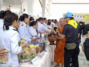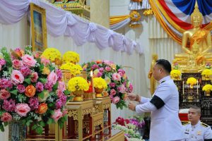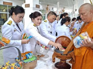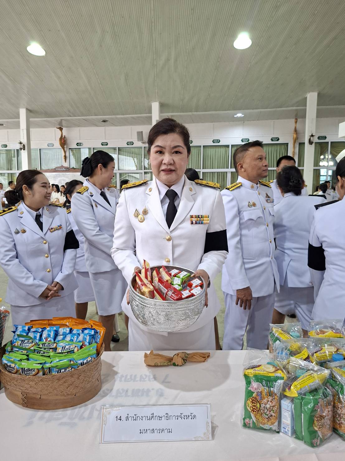 วันศุกร์ที่ 5 ธันวาคม 2568 เวลา 07.30 น. ดร. พุทธารัตน์ ทะสา ศึกษาธิการจังหวัดมหาสารคาม มอบหมายให้ นางสาวดาวศิริ ไชยวาน รองศึกษาธิการจังหวัดมหาสารคาม พร้อมด้วยบุคลากร กลุ่มลูกเสือ ยุวกาชาดและกิจการนักเรียน เข้าร่วมพิธีเจริญพระพุทธมนต์และทำบุญตักบาตรถวาย พระราชกุศลพระบาทสมเด็จพระชนกาธิเบศร มหาภูมิพลอดุลยเดชมหาราชบรมนาถบพิตรเนื่องในวันคล้ายวันพระราชสมภพ วันชาติ และวันพ่อแห่งชาติ 5 ธันวาคม 2568 ณ วัดปัจฉิมทัศน์ตำบลตลาด อำเภอเมืองมหาสาราคาม จังหวัดมหาสารคาม โดยมี นายกนก ศรีวิชัยนันท์ รองผู้ว่าราชการจังหวัดมหาสารคาม เป็นประธาน